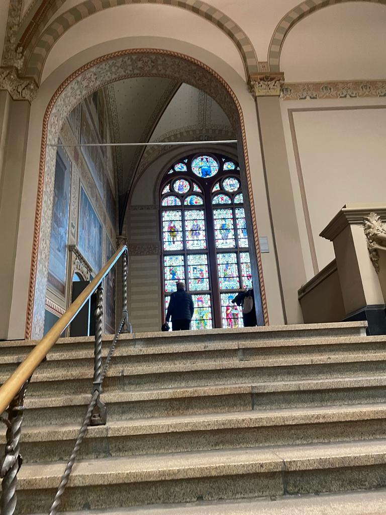 Muita expectativa para a exposição e para conhecer o museu que passou por grande e longa reforma. Porém, chegamos muito cedo e tivemos que nos abrigar do frio num bar perto, onde juntavam-se pessoas de todas as idades e nacionalidades, concentradas numa conversa, num celular, no trabalho em um laptop, ou simplesmente quietas sem nada para fazer a não ser esperar o tempo desse final de tarde passar, ou ainda a abertura da mostra de Vermeer. Finalmente aproximamo-nos da entrada, de ingressos nas mãos, felizes por estamos ali, naquele evento.