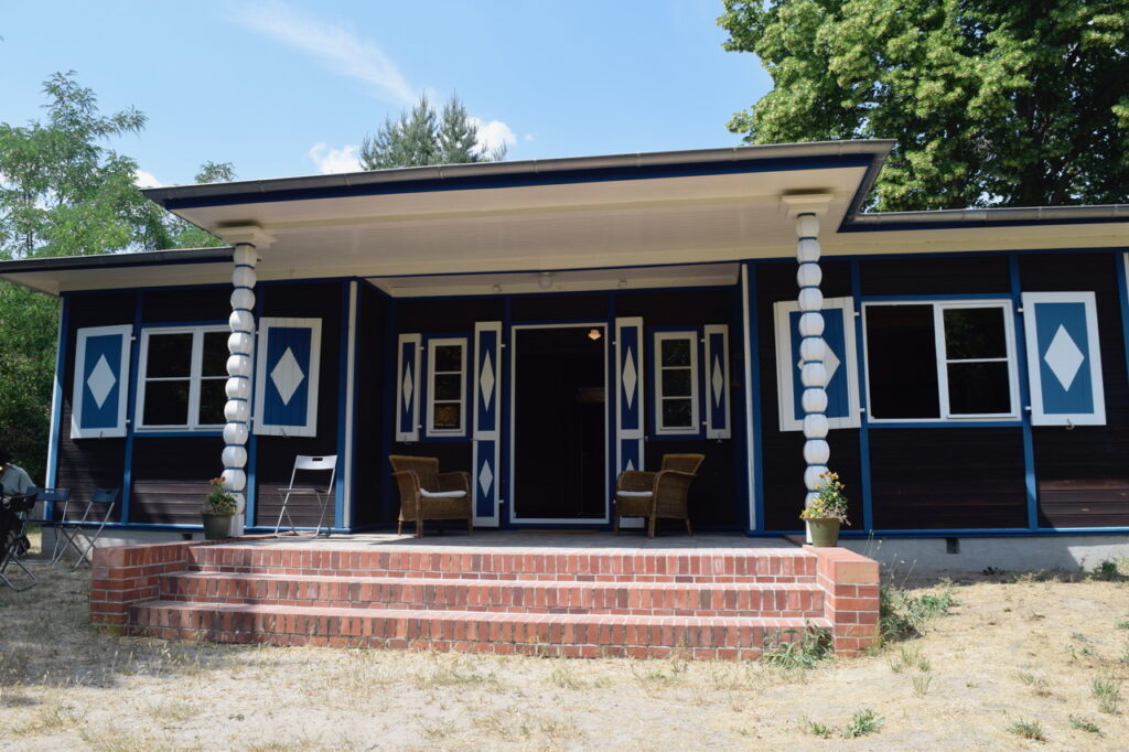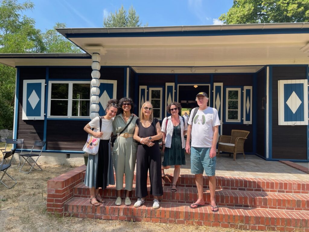 Romance histórico lido e comentado por nós na reunião mensal que fizemos, resolvemos visitar a casa e marcamos nossa ida com a organização. Foi em um dos primeiros dias de verão berlinense de 2023. Dia ensolarado e quente, viajamos de carro por 1 hora aproximadamente até Gross Glienicke e lá estava ela, a Casa no Lago restaurada e linda, como na época em que foi construída e habitada.
