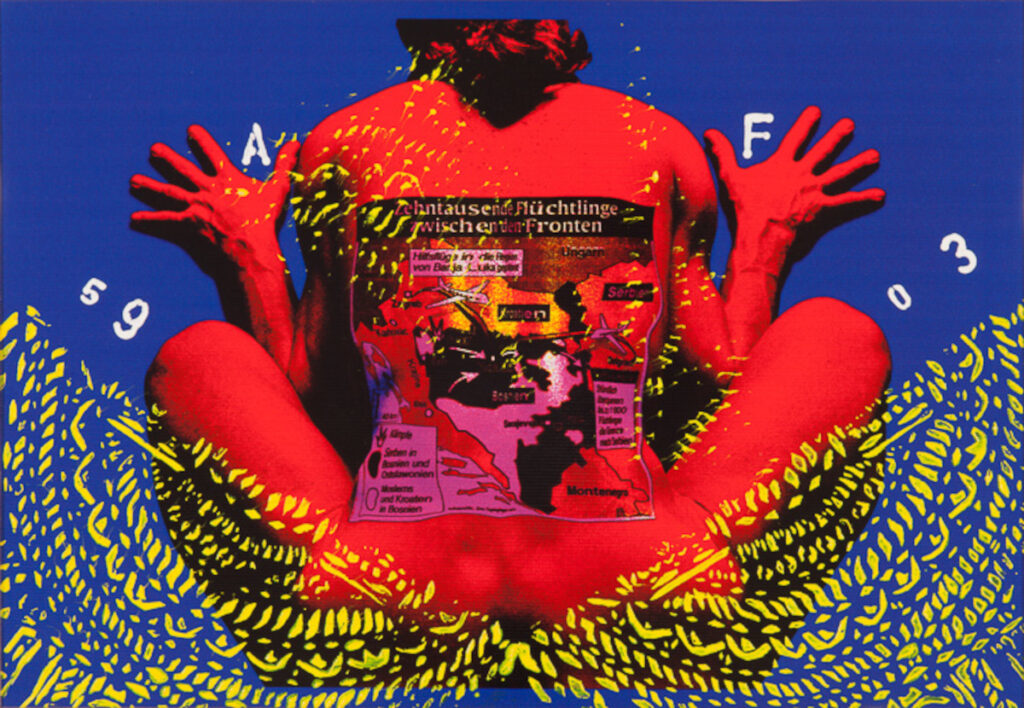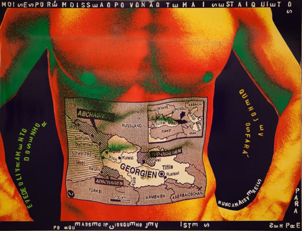 O corpo humano pode ainda servir de suporte para a denúncia-crítica da sociedade contemporânea, como as fotos retrabalhadas da série “Body Builders”, de 2002, na qual o artista imprime, sobre peles de corpos atléticos, mapas de regiões do mundo em conflito.